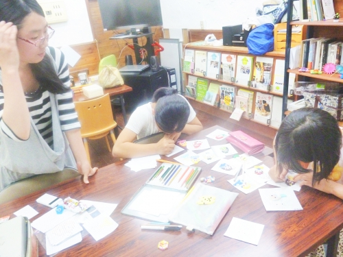 いつもの子ども達は下絵塗りでお姉さんをお手伝いしていました。