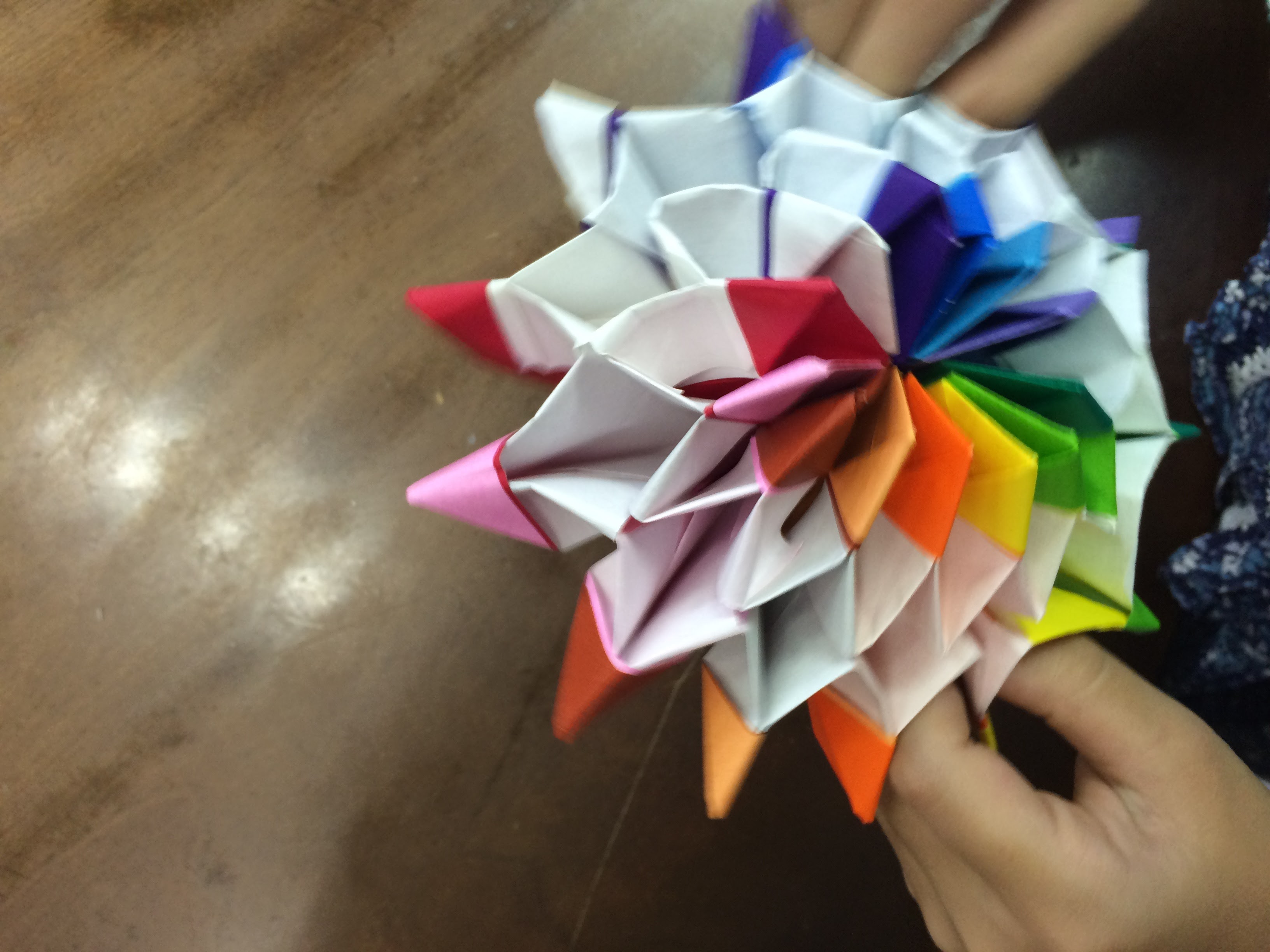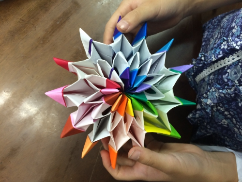 今日は折り紙名人に「くるくる回転するまほうの花」の作り方を教えてもらいました。