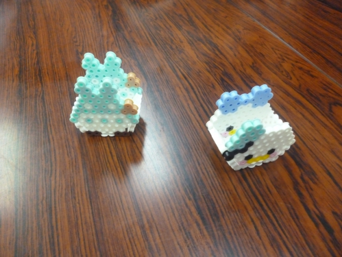 アイロンビーズには、「設計図」があり、図説どおりにやれば難しい作品も作れるのですが、Iくんを筆頭に何人かの小学生たちは頭の中で設計図を作って立体を作っているのです。