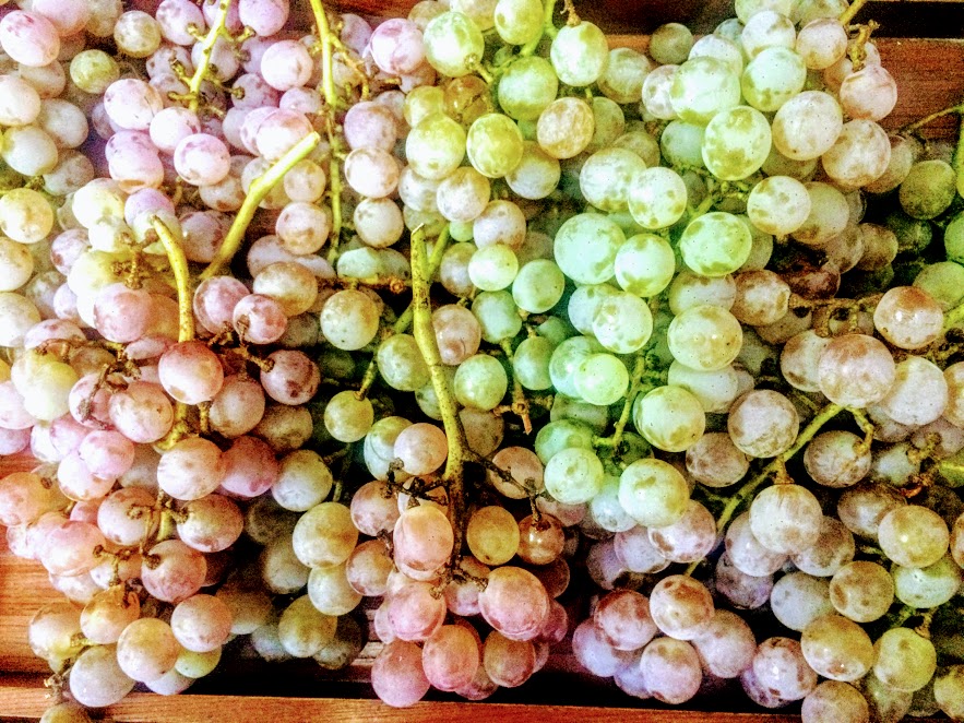 パレードが去った後は、となりの八百屋さん「とれたの」のHさんから山盛りのぶどうの差し入れ。