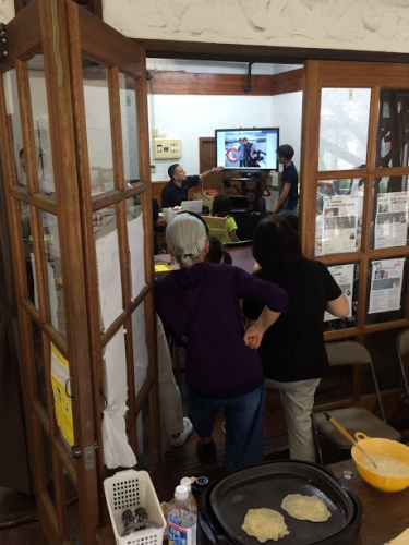 小学校の友達や、駄菓子屋の仲間や、通りがかりのお客様、たくさんの人が集まりました!