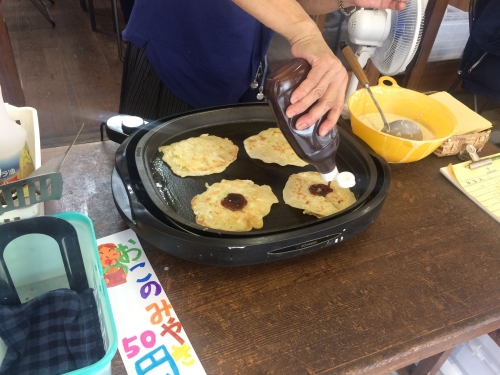駄菓子や「くにちゃん」では、名物キャベツ焼きを売っています。