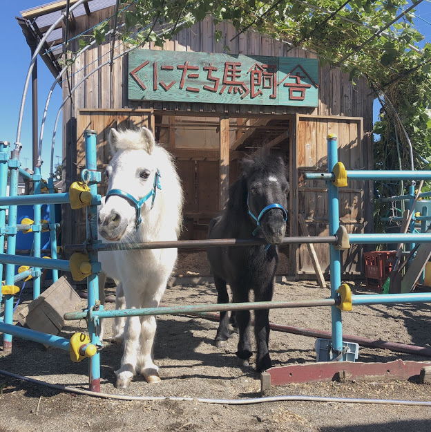 そこで、駄菓子や「くにちゃん」の目の前のたまご広場で、リトルホースのジャックとダンディがお散歩したり、草を食べたりする様子を皆さんに見て頂けるイベントを行うことにしました。