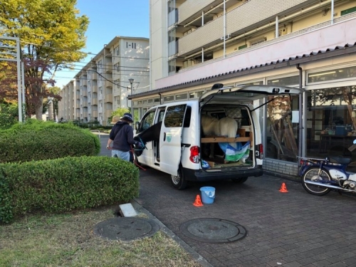 車のうしろに見えるのはダンディのお・し・り?